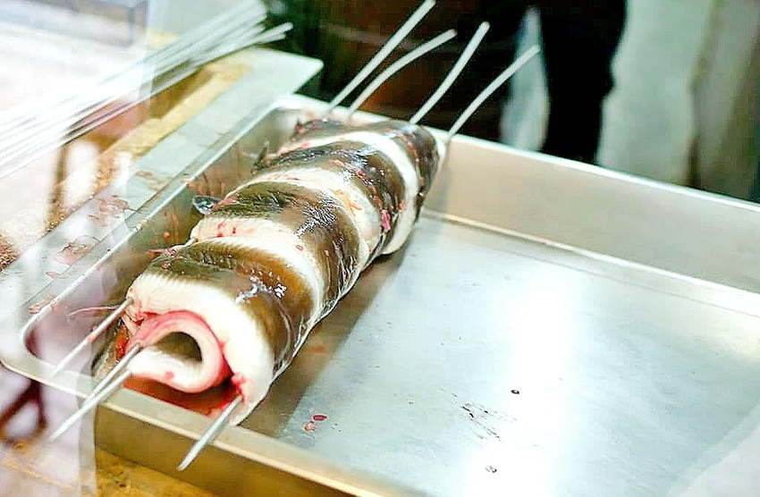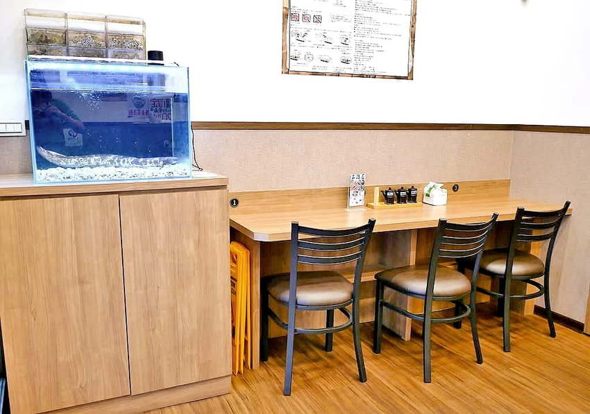 坐在個人長桌旁.可近距離欣賞到活鰻魚