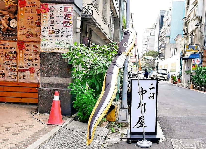 三河中川屋的門面採日式風格. 使用木素材來裝潢. 印象深植人心. 相當顯眼好找