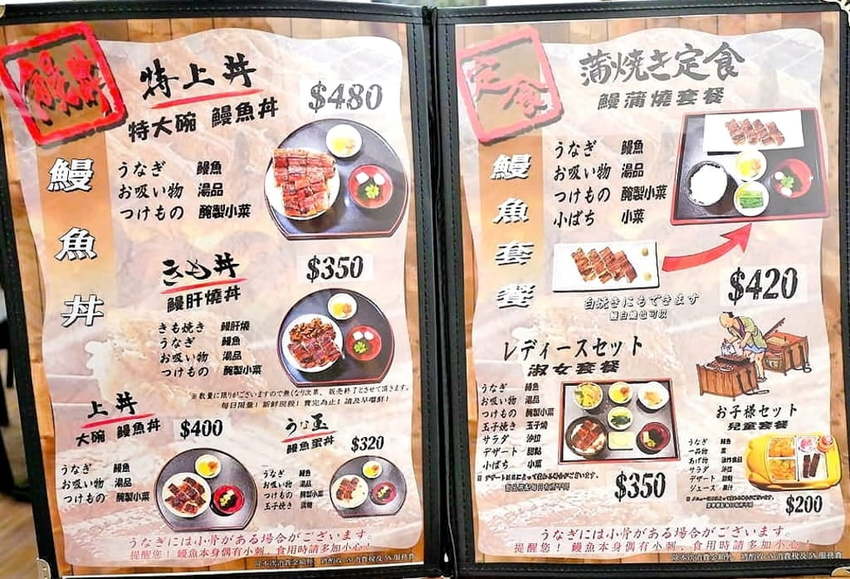店內主打鰻櫃套餐.鰻魚丼.鰻乾燒丼.鰻蒲燒.另外有牛豬雞肉/秋刀魚套餐