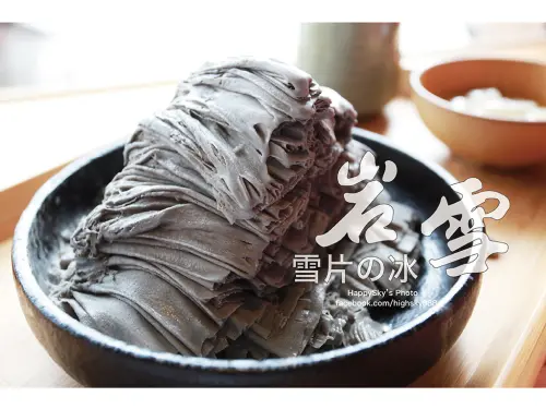 很猶豫要點啥時,老闆娘很阿莎力就給我雙拼,有雪片黑糖冰與雪片檸檬冰兩種口味。一片片灑落的片冰,像極了之前吃過的阿爸的芋圓蔗片冰。