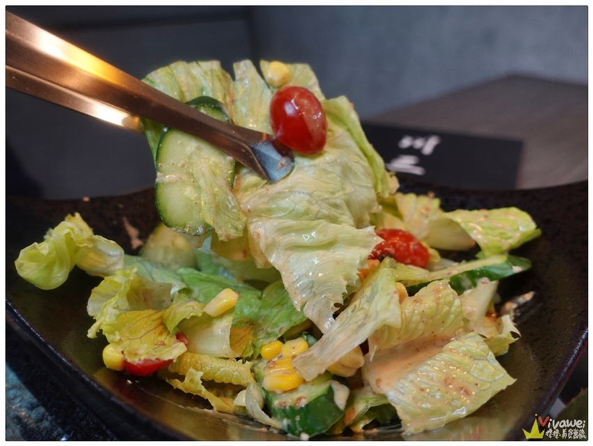 ▲套餐附贈的野菜沙拉可以選擇凱薩/胡麻/千島口味!我們選的是招牌的胡麻口味!但生菜沙拉我們沒有一端上來就馬上吃光~打算把這沙拉留到後面配燒肉解膩用!店家也有包肉用的生菜~單點一份是50元!