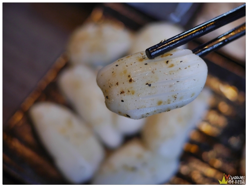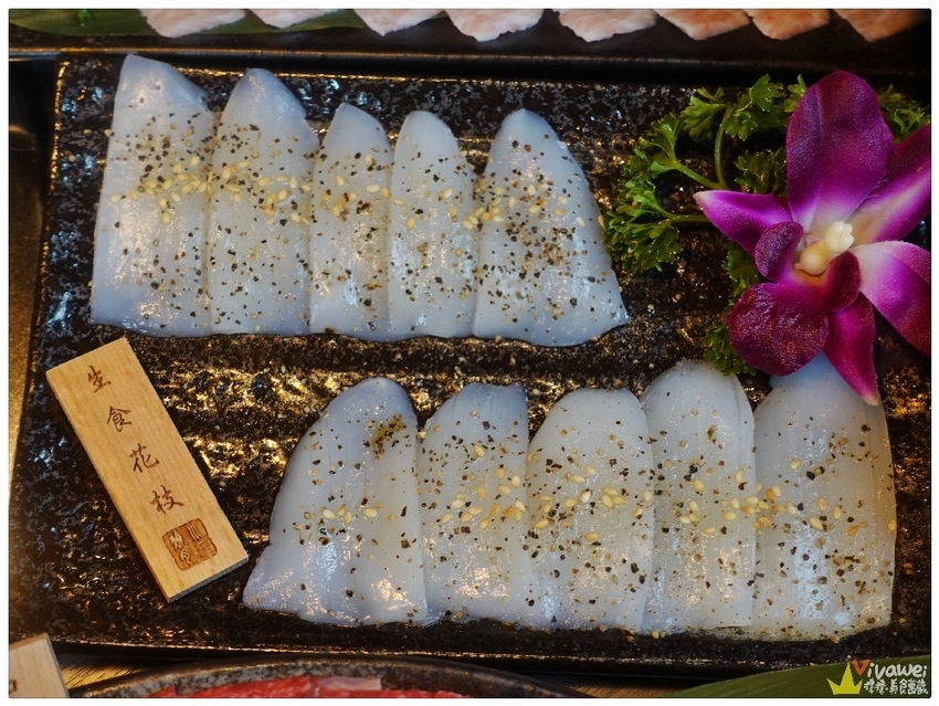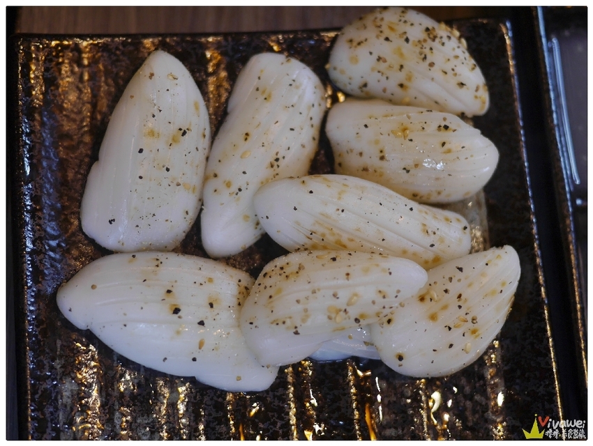 ▲生食花枝僅用胡椒和芝麻提味~花枝烤到有點捲曲的時候就可以吃囉!花枝的口感脆Q~新鮮度極高!單吃就能吃到天然的海味!還蠻特別的👍