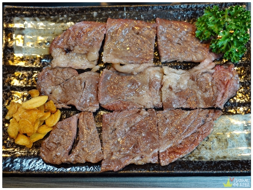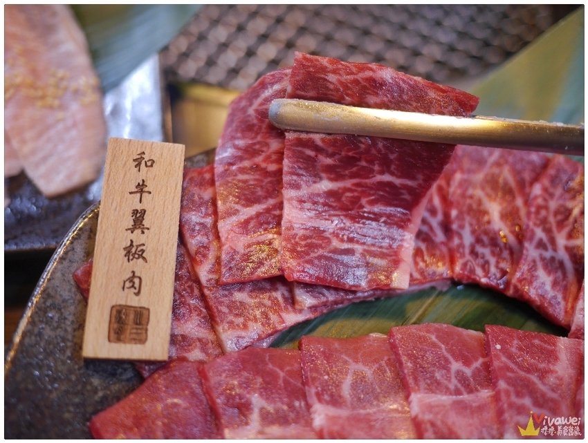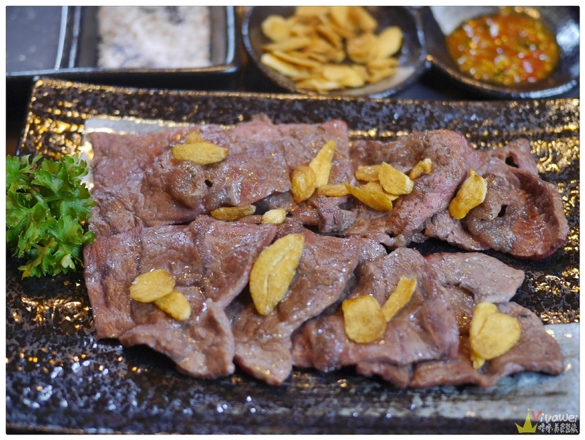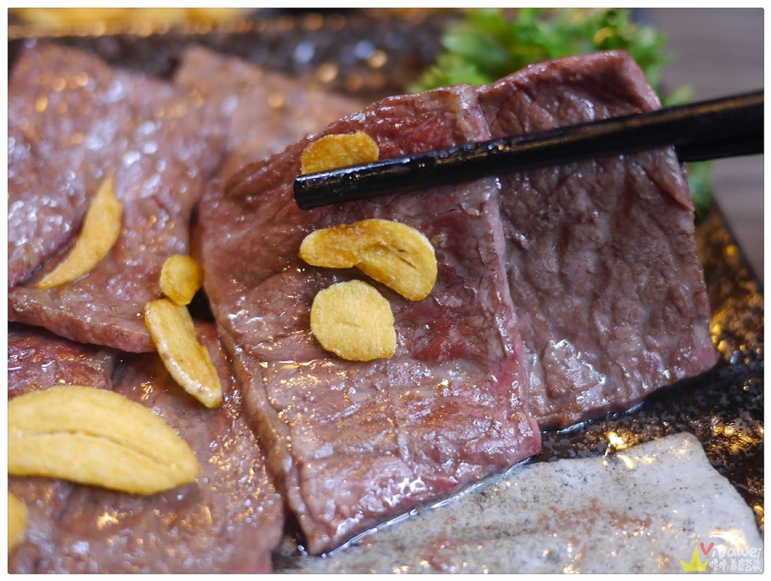 ▲和牛翼板肉的油花豐富~軟嫩適中!直接吃原味配蒜片就很讚!也可以依照個人喜好~沾煙燻鹽或是烤肉醬唷!