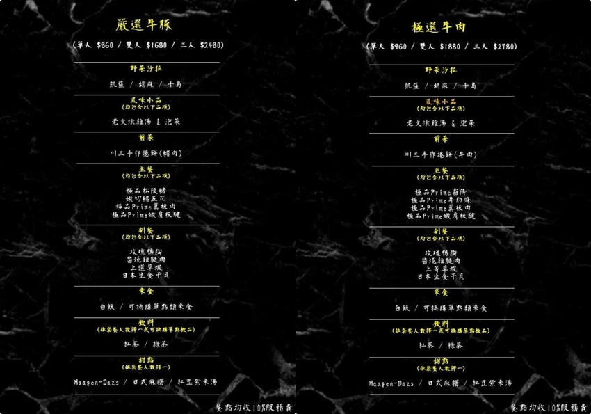 ▲主餐有澳洲和牛霜降、澳洲和牛肋條、澳洲和牛翼板肉、澳洲和牛板腱肉!川三的肉品都是精心挑選,這麼高級的食材就是要吃他的原汁原味才值得阿😋