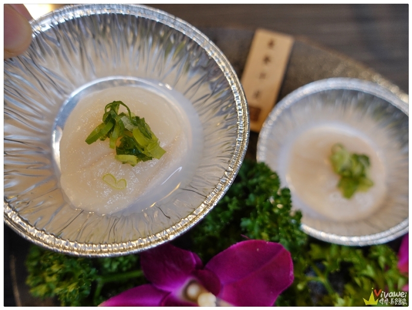 ▲生食干貝簡單加了蔥花點綴~因為是生食等級~所以不需要烤太久!
