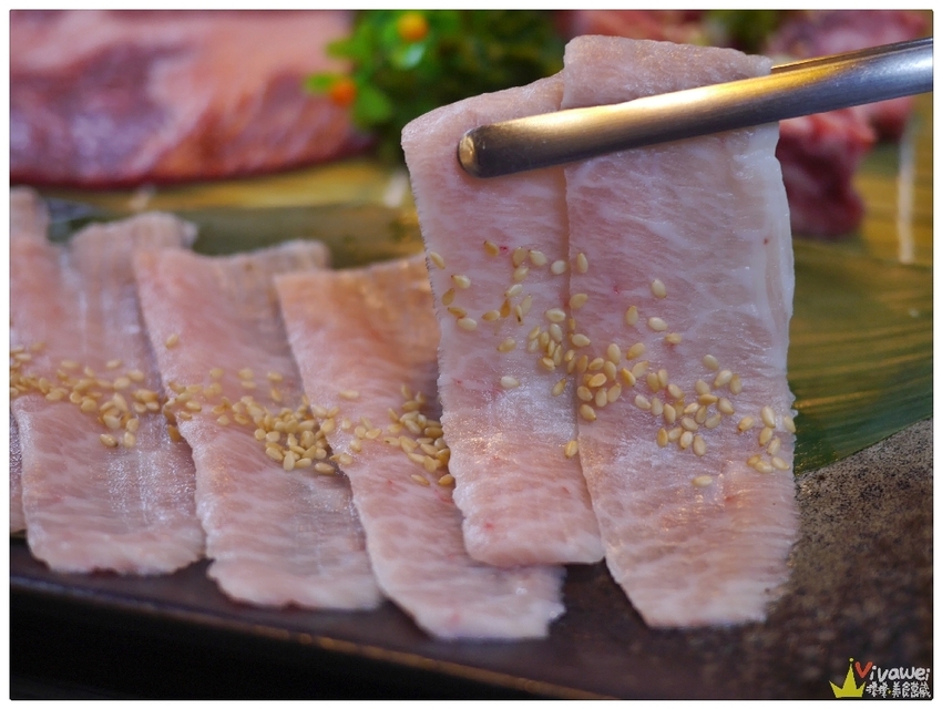 ▲店家選用義大利的松阪豬肉,是手工現切的,肉紋超美!沒有多餘的調味,僅加上白芝麻提味!