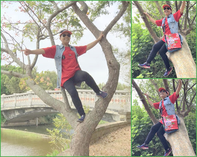 姊妹們卯起勁拍個不停,湖邊的景緻優美、涼風徐徐~~