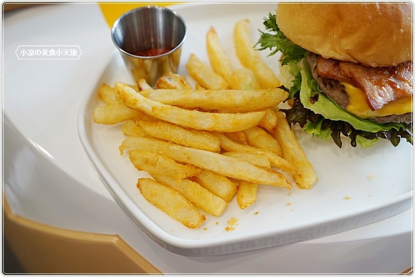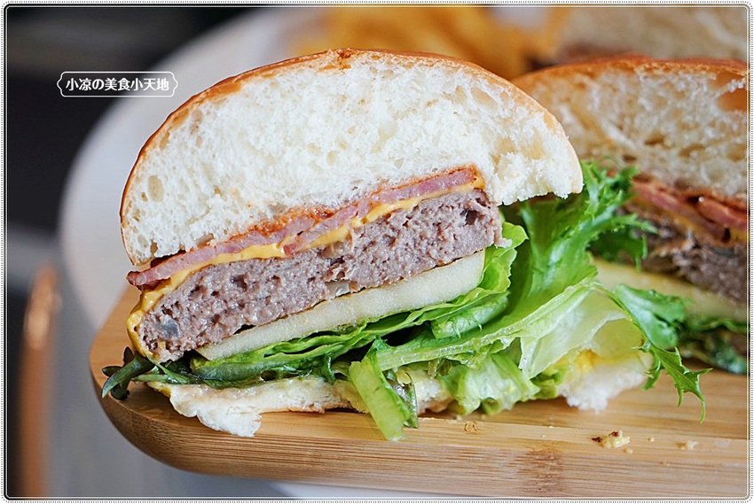 其實小涼有拍一下子後,才分切這培根起司純牛堡,想不到切開後的厚實牛肉漢堡排還很多汁,可見一拿到手就吃時的啾西口感一定讓牛肉控超愛,千萬不要害羞地就大口咬下去吧!絕對能滿足你的味蕾,大快朵頤一番~~