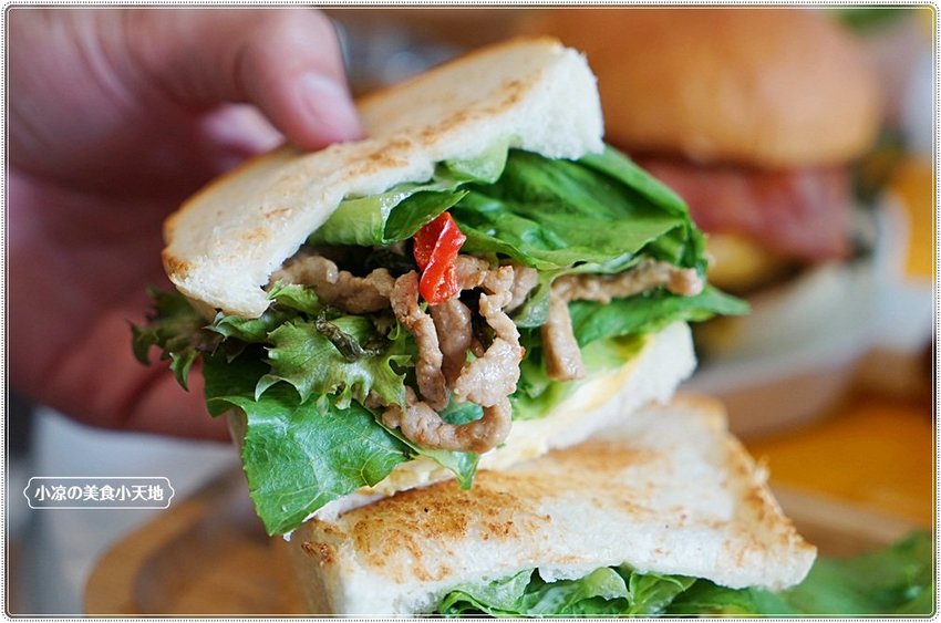 除了爽脆的無毒安心生菜、打拋豬等,還少不了滑嫩的歐姆蛋唷!手作吐司一律都會稍微的炭烤過在夾上食材,入嘴更是多了點炭香更迷人!!