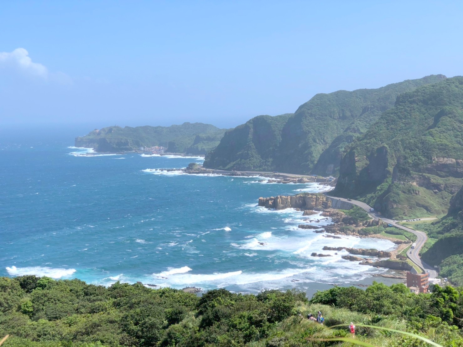 在陡峭的山地俯瞰海浪激起的浪花,讓我們的目光