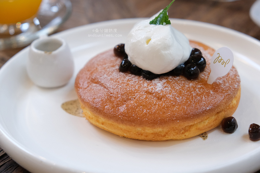 ▲ 一刀切下去就被我毀容了,外層是蓬蓬軟綿的鬆餅,內在由起司與麻糬內餡組成,把所有好吃的元素都放在一起然後變得更好吃 ฅ^•ﻌ•^ฅ 上層的鐵觀音奶霜也是微甜、清爽不膩。珍珠就比較像裝飾用途了,另外附上一小杯鐵觀音茶葉,我完全可以自己嗑掉一個,後來覺得很後悔分給朋友一半。如果沒有吃瓦帕鬆餅,那就太枉費來微兜用餐了!