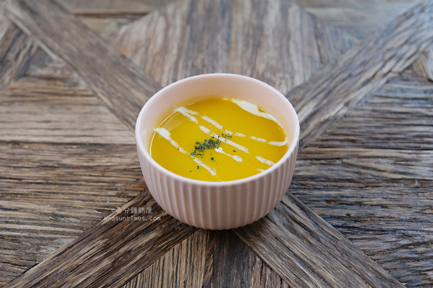 對南瓜濃湯沒有熱情,默默推到朋友面前…