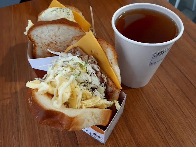 簡單來說就是肉蛋吐司加上花生醬,只因為吃了馬鈴薯泥太驚豔,這個就顯的普通,但還是在水準之上的肉蛋吐司唷!早餐來一份真的超滿足。