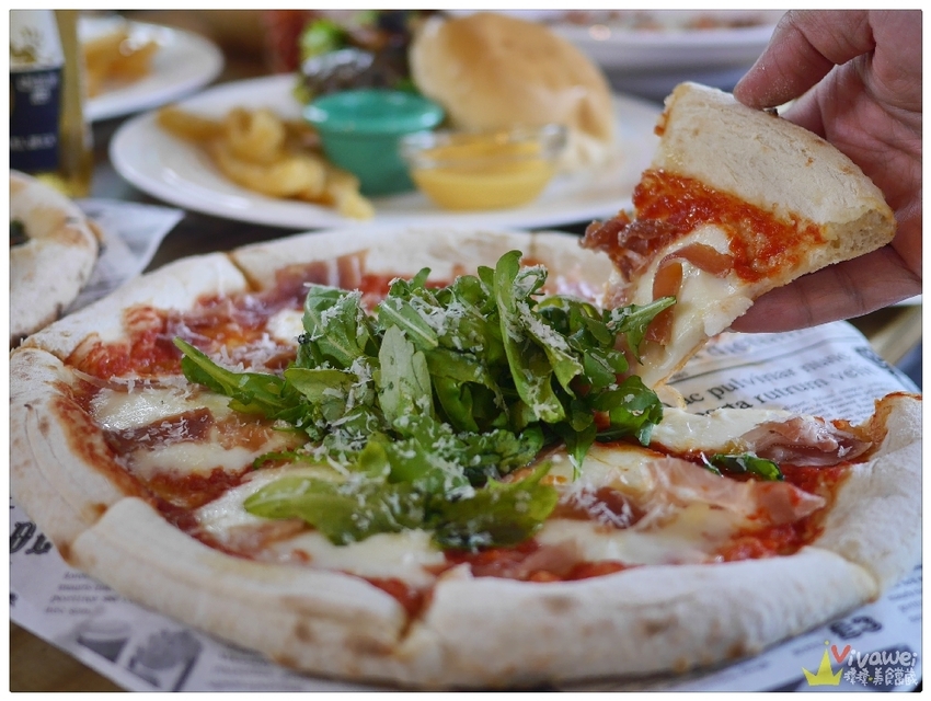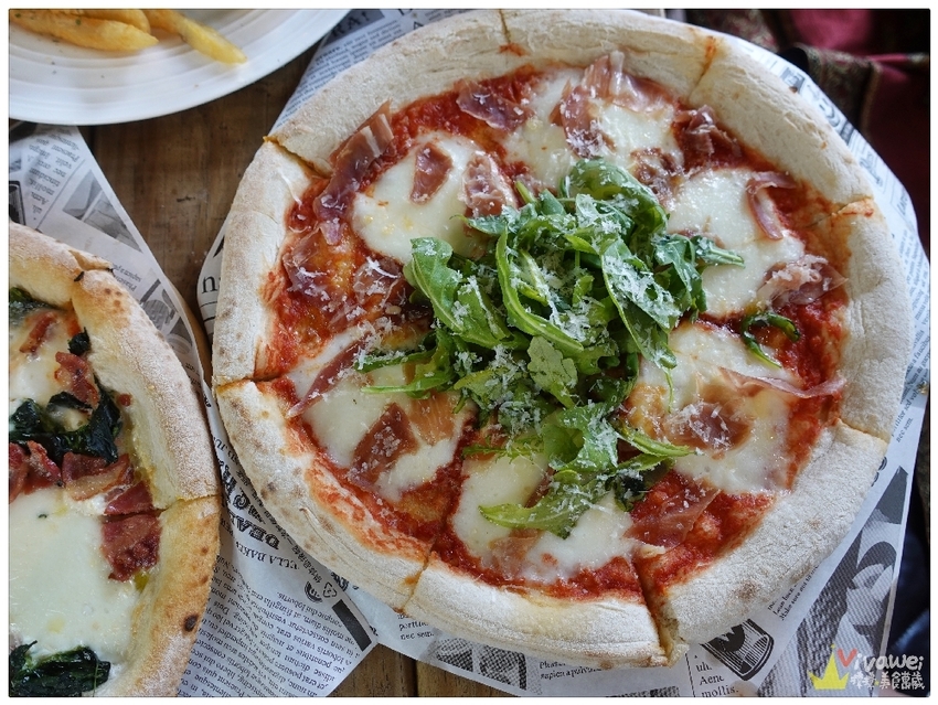 ▲帕瑪生火腿芝麻葉披薩主要用了番茄醬底、初榨橄欖油、再加上馬茲瑞拉起司和帕達諾起司絲,及義大利進口的帕瑪火腿和滿滿的芝麻葉!是很基本款的經典口味!