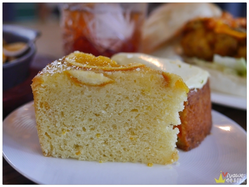 ▲法式黃金橘子蛋糕用了柳橙風味的蛋糕體,表層為100%的天然柳橙醬和進口美國甜橙!蛋糕體有點像是我們平常吃的磅蛋糕,但他們的蛋糕口感紮實且濕潤,口味也很清爽!是很出色的好吃甜點!