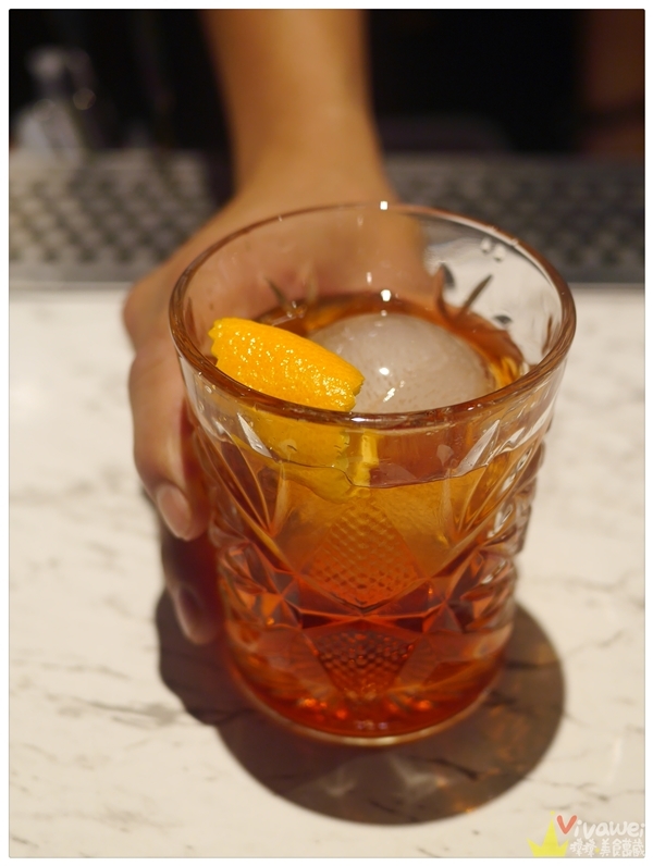 ▲這杯紅色的調酒叫做「尼格羅尼Negroni」,價格為250元/杯!尼格羅尼加入了甜苦艾酒、金巴利酒、琴酒和增添香氣的橙皮~微苦回甘的口味~是一杯重酒感的調酒!(喝酒不開車,開車不喝酒)