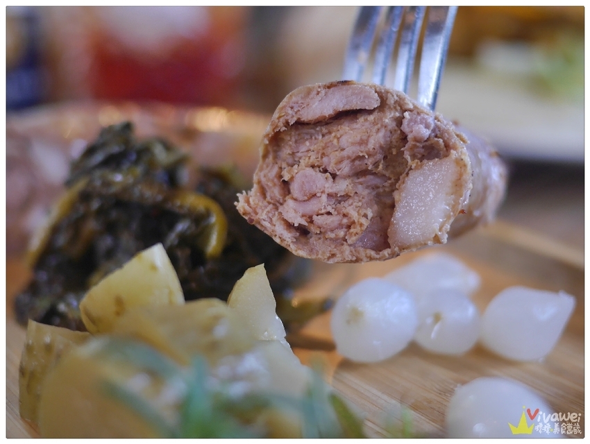 ▲這道手工義大利香腸佐蕪菁時蔬是店家的新品!店家用了溫體豬的後腿肉,再加入了肉荳蔻、小茴香、松子等十多種香料和紅酒,全手工醃製,再手工灌入新纖腸衣中熟成!一旁搭配了小洋蔥、酸黃瓜、義大利進口的蕪菁!是道很適合配酒的開胃菜!(喝酒不開車,開車不喝酒)