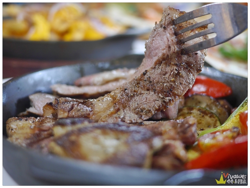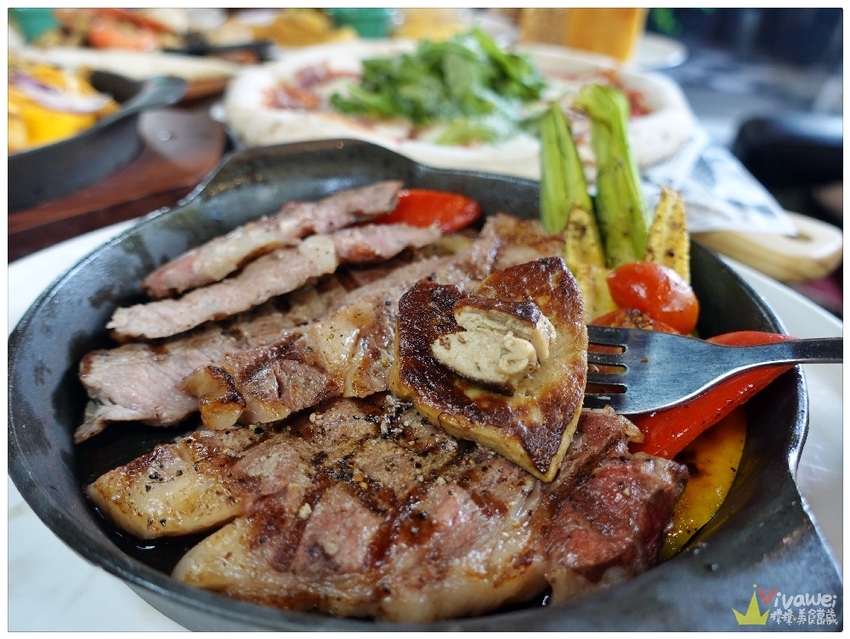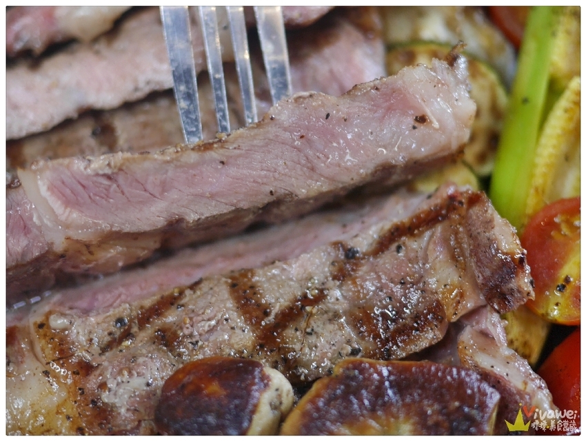 ▲安格斯極黑肋眼的等級介於choice和prime之間,而肋眼包含了超精華的上蓋部位,可以讓你吃到比較多不同的口感!牛排口感紮實,肉質軟嫩多汁,搭配著炭烤時蔬一起品嚐,超級match!