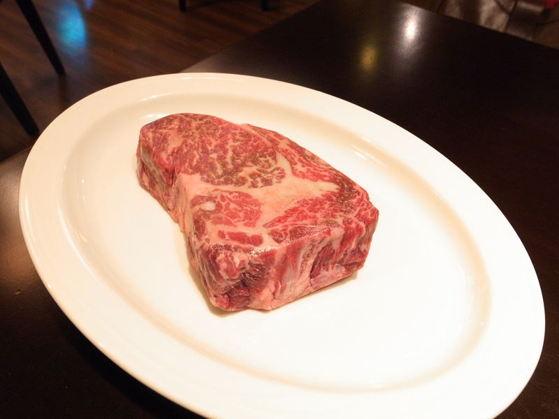 (一大塊澳洲9+的和牛肋眼,熟成室裡經兩個月已達最佳狀態。)