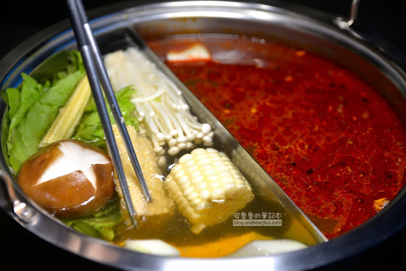 菜盤裡有:地瓜、南瓜、大黃瓜、黑木耳、高麗菜、水果玉米、茼蒿、香菇、金針菇、豆皮、芋頭及五種火鍋料,滿滿一盤光看就覺得好滿足,感覺吃菜盤和火鍋料就飽了