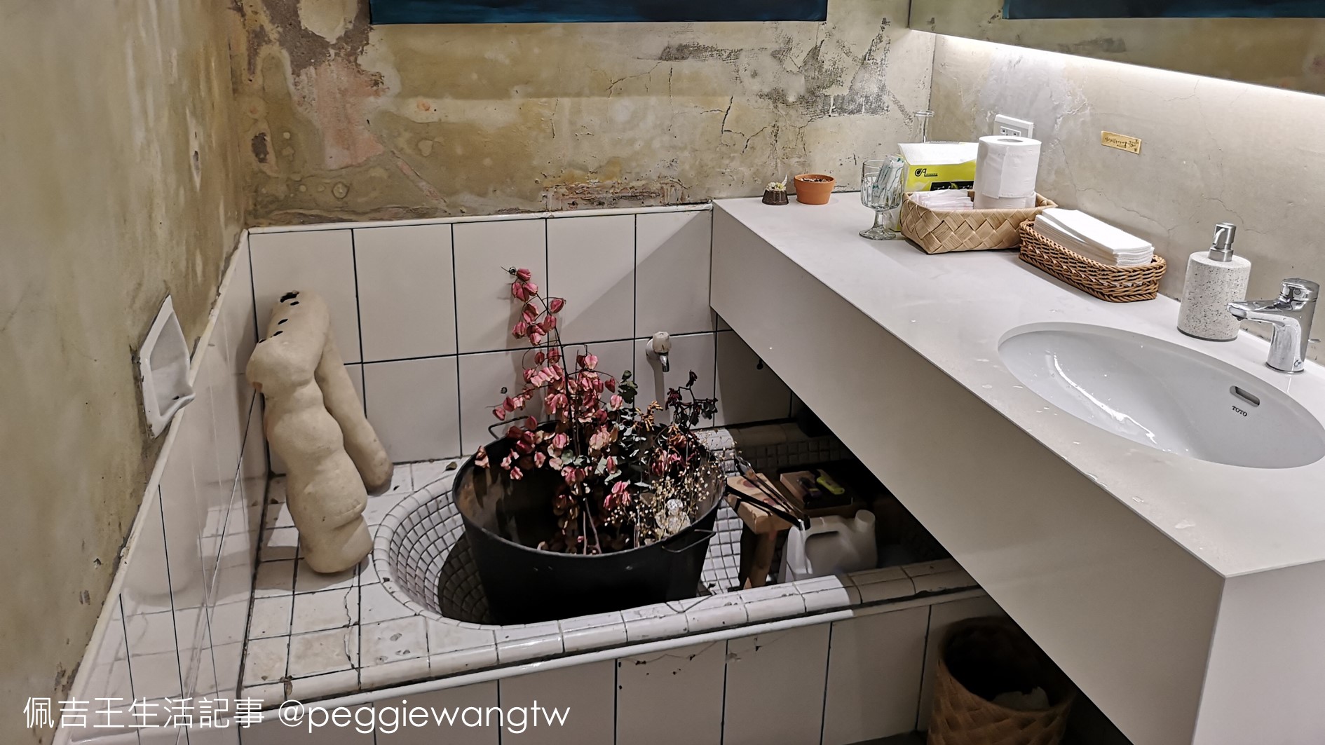 | 廁所:保留老屋原有古早磁磚浴缸,擺上大盤的乾燥花,讓廁所也變得很有氣質(?) |
