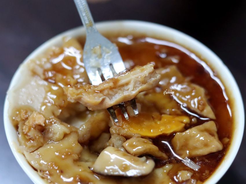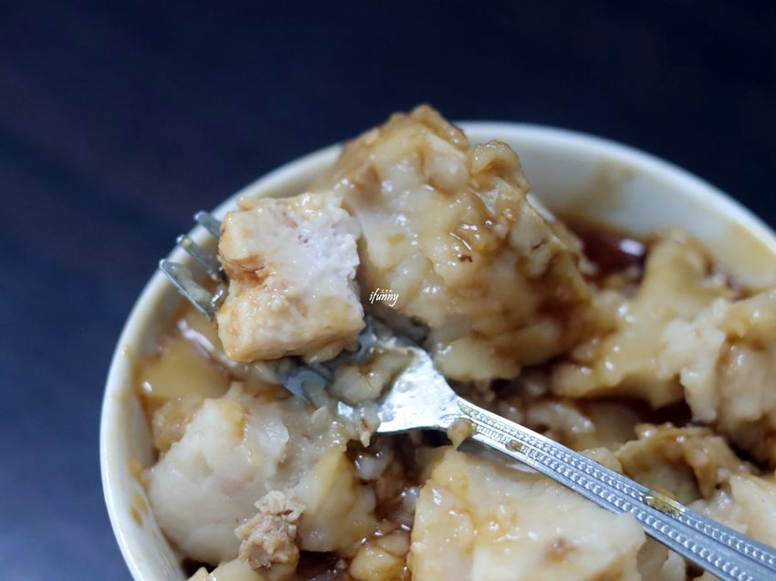 無刺虱目魚碗粿放了虱目魚塊,已經去除細刺的魚肉很細嫩,並加了切丁的虱目魚丸,整個風味十足。