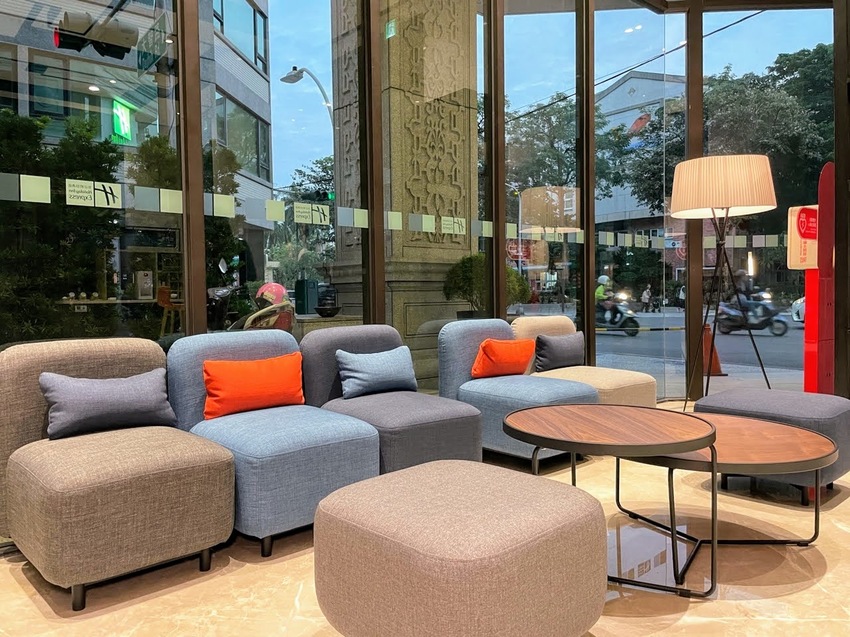 進入到大廳之後,最新吸引蓋瑞哥的是那個全球IHG Express 智選假日酒店的味道,不論去歐洲、美國、台灣,這個熟悉的味道在你一踏進飯店就會讓你有種安心回家的感覺,大廳與休息區都是使用活潑的藍橘配色,顯得相當年輕與有活力。