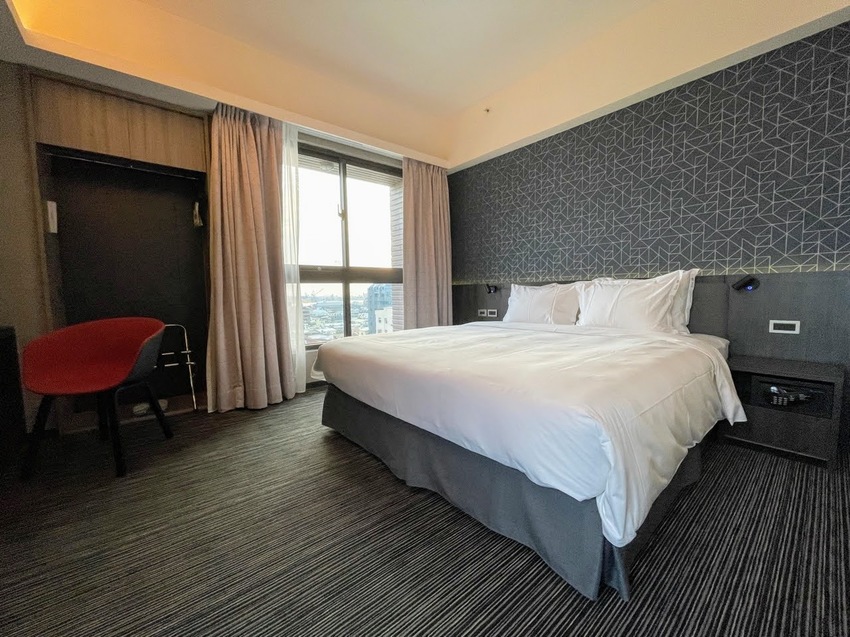 這次蓋瑞哥入住的是尾數08的標準房,房內空間約8坪,雙面採光,一面可以看高雄港夕陽,一面可以看愛河河畔。