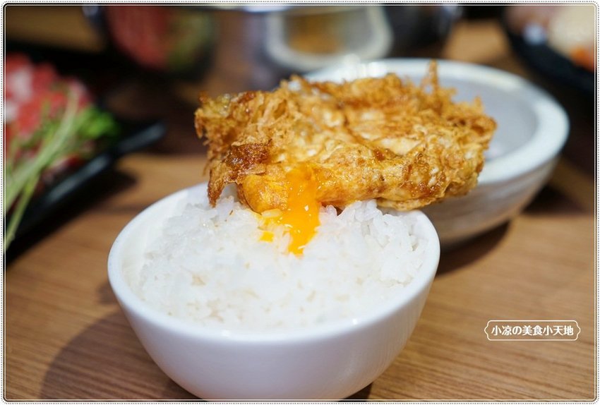 麻油炸彈,使用人道飼養放牧雞蛋,在經過黑麻油炸過之後,香氣四溢、除了可以放在火鍋內煮,也可以直接吃、麻油炸彈裡面是半生熟(如果習慣吃全熟的可以在點餐時告知),外香酥內有著醇濃的蛋黃,建議要趁熱吃喔!!