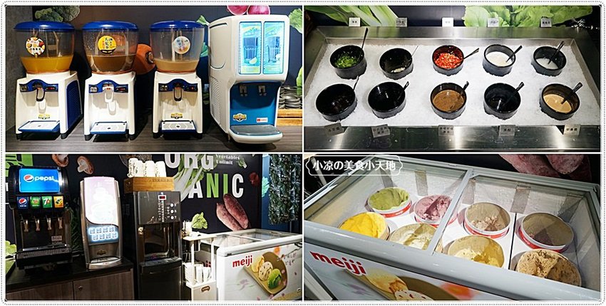醬料、飲料、咖啡、氣泡飲、明治冰淇淋區(以不浪費為原則拿取)
