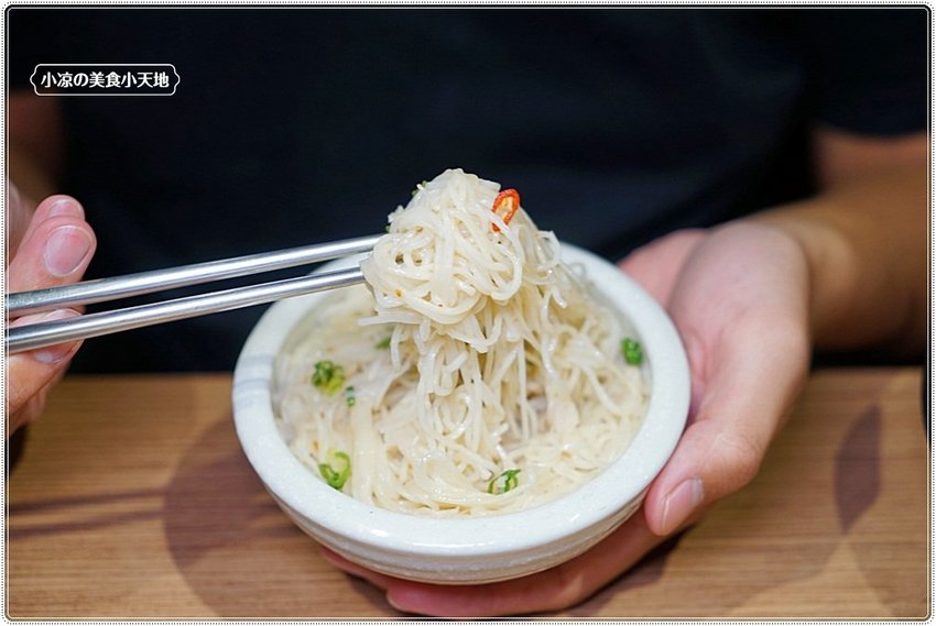 麻油麵線,使用統一生機有機麵線,拌入純黑麻油,再撒上些許蔥花、油蔥,香氣足麵線不軟爛的好吃!!