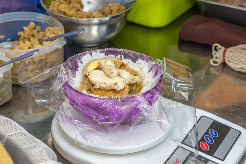而愛吃辣的朋友也很推薦來上一匙辣醬,香麻於前,尾韻麻辣,全程也都會利用電子秤來確認飯糰總重。