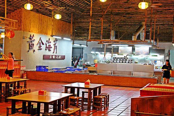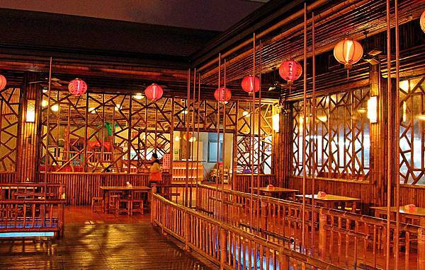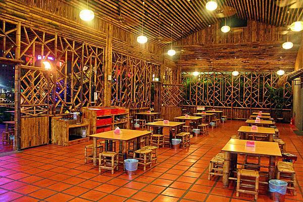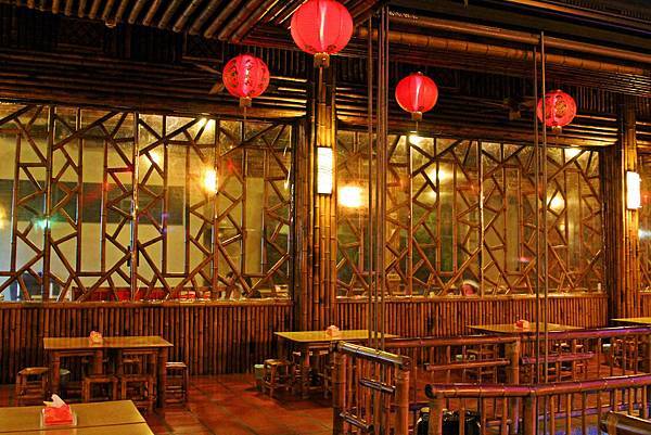 餐廳建築內外的裝潢走竹屋庭園風格,古早味氣氛濃厚,