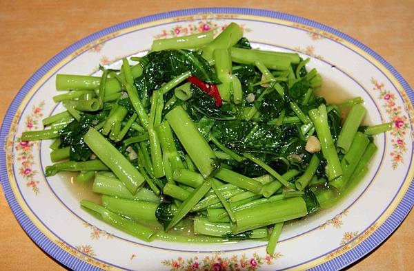 蒜末爆香大火快炒,加點辣味~香味出來了!!