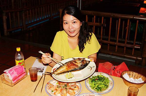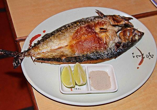 超大一隻肥滋滋鹽烤鯖魚,外皮烤得非常漂亮,不錯吃~