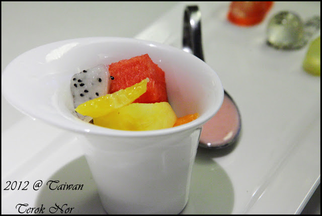除了一大碗的水果外,舒果還很費心的餐盤上用水果及沒有太多滋味的果凍做了三個水果果凍及小切片,增添許多視覺上的享受!
