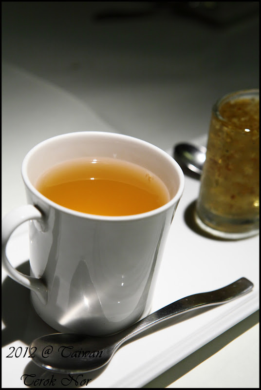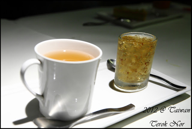 好不容易把主餐都塞進肚了,再來上桌的便是甜點與飲料啦!!這是同行有人點的"楓糖桂花凍"跟"洋甘菊香柚花茶"!