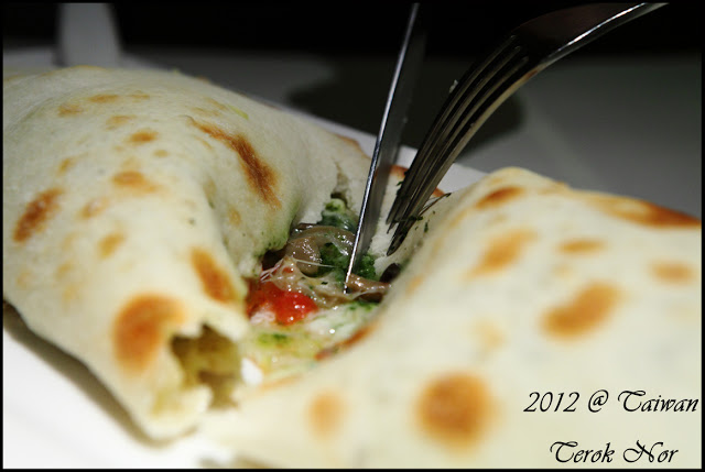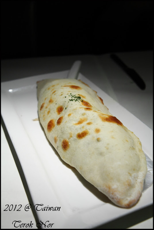 這是同行友人點的主餐"卡洛佐尼枕頭披薩"!!點餐時服務生說舒果的數種主餐裡份量最大的一道菜,果然披薩上桌時大家就覺得:「完了!這怎麼可能吃的完啊?!」XDD