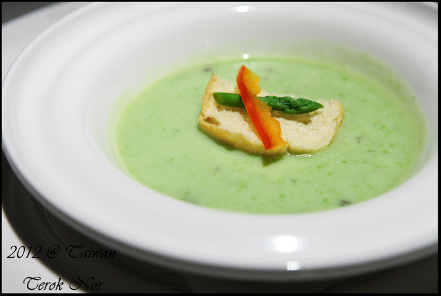 "青漾蕈菇濃湯"這是一盤味道非常非常喝不出豆味的青豆濃湯,可能是因為在青豆湯裡被加了很多香菇、洋菇、杏鮑菇吧?整碗濃湯裡是滿滿的蕈香,飲之令人齒頰留香,回味無窮!