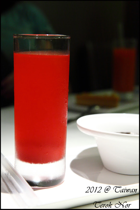 這一杯鮮紅的飲料則是"黑醋栗接骨木"!上一次喝到接骨木汁是在 IKEA 喝到的,味道相當的與台灣人口味不同,而加上黑醋栗後味道更是特別,雖說一開始喝時還是會因為不習慣而有點怪,但喝完後又會懷念...... :p