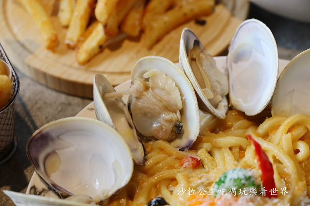 身為資深蛤蜊控看到這盤"冠軍蛤蜊麵",我心花開了,因為菜單上寫的大蛤蜊給的是牛奶貝耶~~