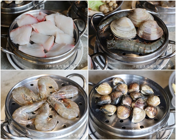 一層層疊起來煮,海鮮的湯汁會留到最底層的火鍋,有服務人員會幫忙計時並在熟時幫你分裝到盤子,方便食用