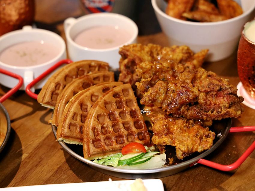 這道紐奧良經典的餐點,是結合了炸雞及楓糖鬆餅,有甜有鹹,非常地受到歡迎。格子鬆餅烤得酥香脆,外皮有如餅乾般,麵糊的比例很恰當,吃來頗為紮實且奶香四溢,淋上楓糖後,甜蜜加分卻不甜膩,是表現很優異的鬆餅。