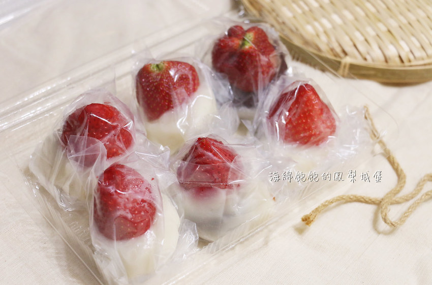 與一般市售草莓大福不同之處,外面沒有抹粉