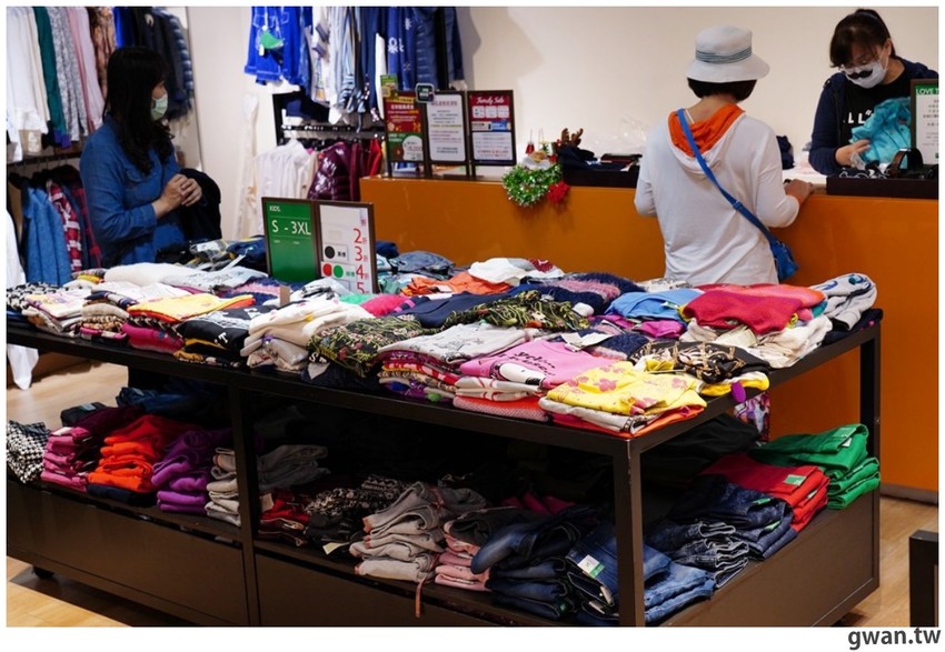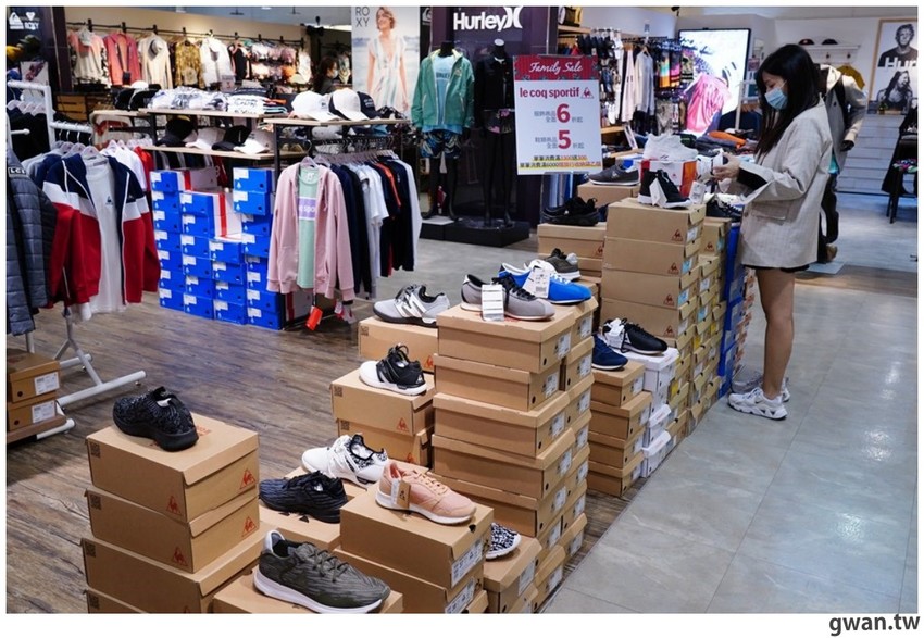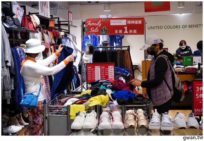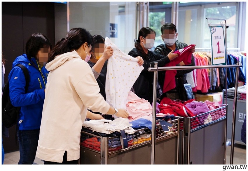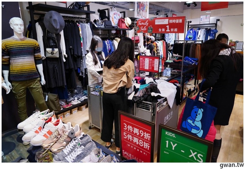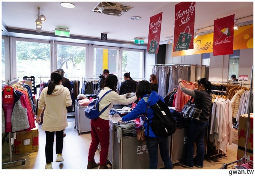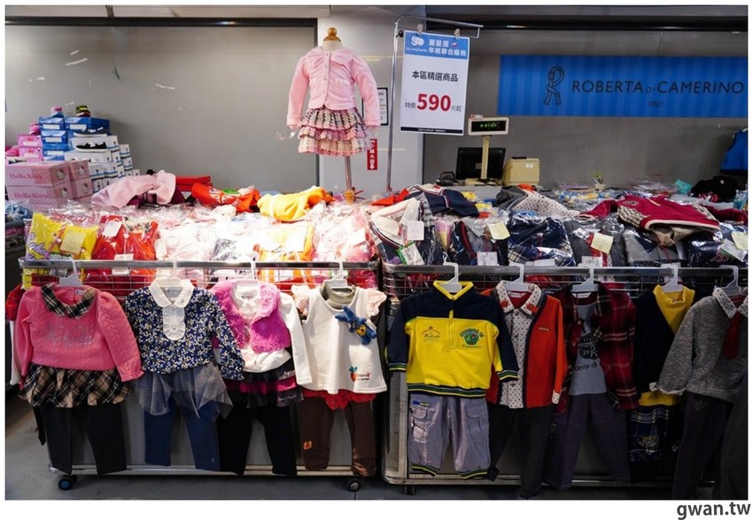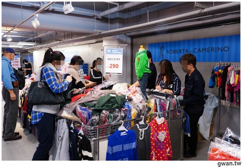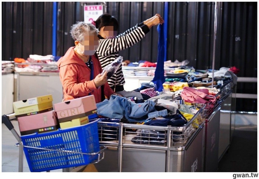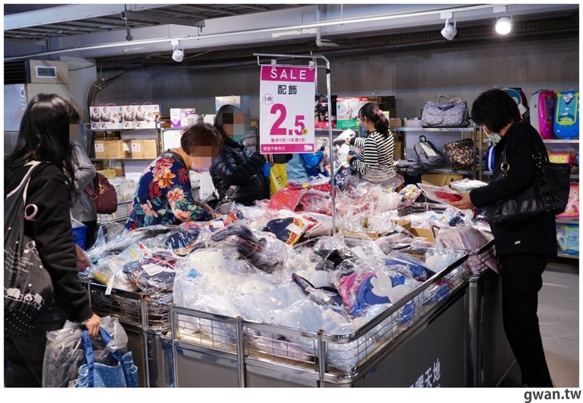 每一區花車都有不同折扣,外出服單件2.5折、三件再9折、五件2.2折的人氣也很旺