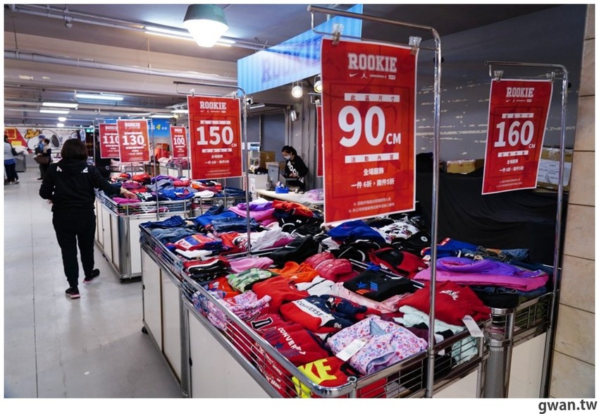 ROOKIE提供了NIKE、LEVI’S、CONVERSE知名運動品牌的聯合優惠,而且依照尺寸做好花車分類,逛起來蠻方便的