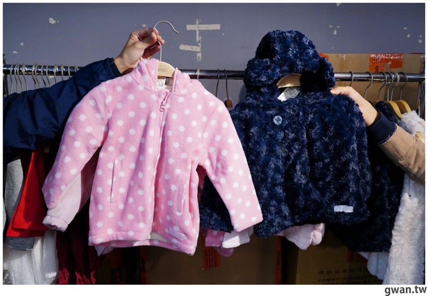 再來會場中間設置了一些吊桿區,有199和599價位讓大家選購,每件衣服都整齊掛起來更方便挑選,花車可能還要挖寶碰運氣,吊桿區服飾一目了然,看到喜歡的趕快拿在手上!