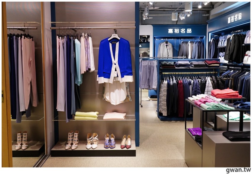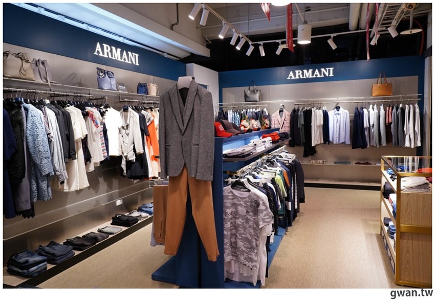 Armani跟嘉裕名品連在一起,同樣都是很有質感的櫃位,但一件西裝搞不好超過你一個月薪水,一般上班族根本買不起