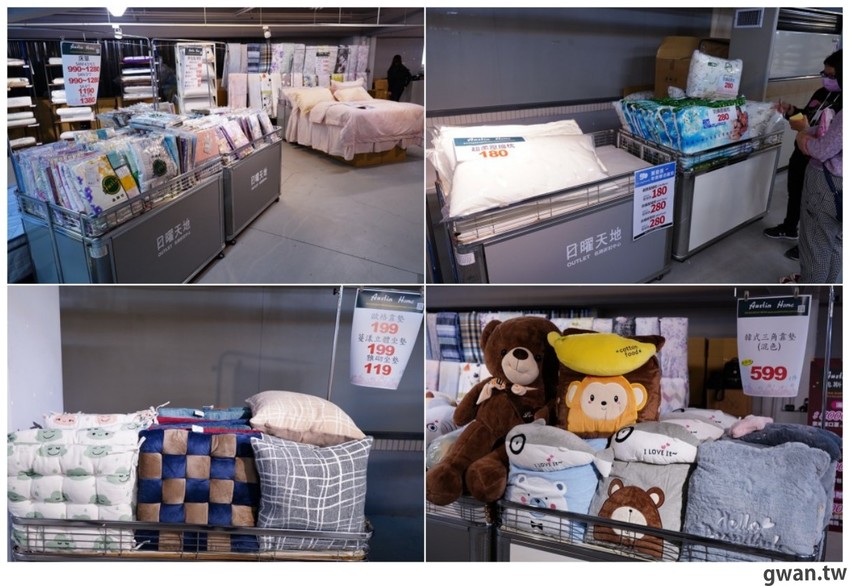 還有各式寢具、床包、枕頭、坐墊、靠墊可以挑選,超柔壓縮枕180、防螨壓縮枕280,可愛的韓式三角靠墊也好想帶回家