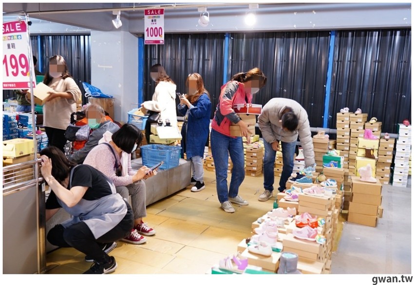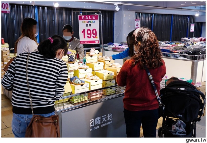 除了衣服外,童鞋也不要錯過,花車上的鞋款只要199元甜甜價,一開門也很多媽媽直接帶小朋友來選購